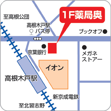 右側にイオン、京葉銀行高根支店があり銀行の2軒先のビルです